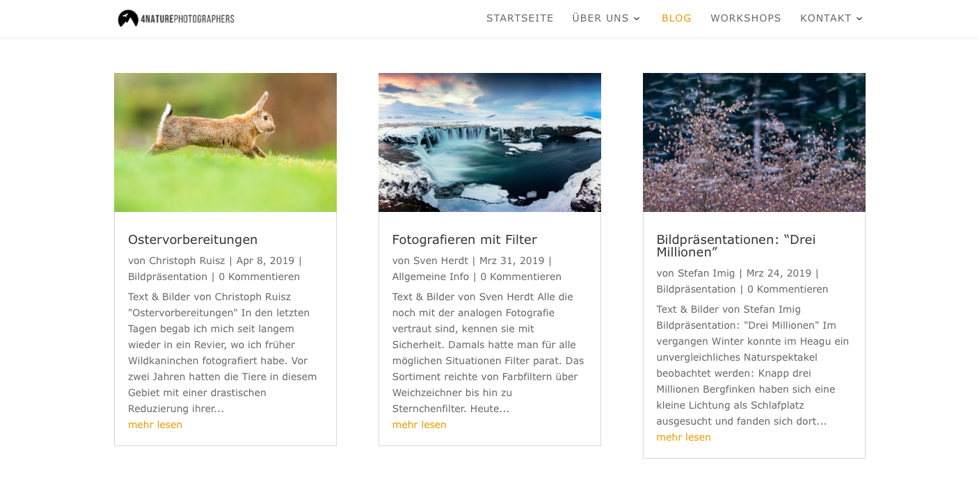 Dieser Blog über Naturfotografie wird gleich von vier professionellen Fotografen zusammen betrieben, darunter auch unser beliebter Dozent Sven Herdt. Immer sonntags teilen die „naturephotographers“ hier Fotos und Geschichten von ihren Trips. Neben praktischen Fotografie-Tipps gibt es auch Kommentare zu Naturthemen zu lesen, was noch einmal beweist, dass die Vier eben nicht nur leidenschaftliche Fotografen, sondern auch echte Naturliebhaber sind. Sympathischer, kompetenter und authentischer Blog. Für Naturfotografen ein echter Tipp!