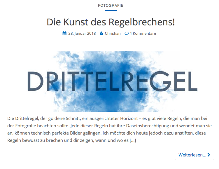 Das Schöne an diesem Blog: Er ist ein echtes, reines Hobby. Christian und Carina sind Hobbyfotografen wie Sie und ich, nehmen grundsätzlich keine Werbekooperationen an und berichten authentisch und sympathisch von ihren Reisen rund um die Welt. Nebenbei gibt es praktische Tipps zu Strategien, Locations, Produkten und mehr.