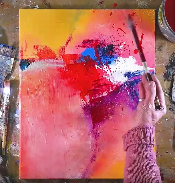 In diesem Tutorial für Anfänger malt ANGELIKA BIBER von artistravel ein abstraktes Werk und erklärt im Detail wie man am besten vorgeht. Sie zeigt dabei wofür der Color Shaper in der Acrylmalerei zum Einsatz kommen kann.