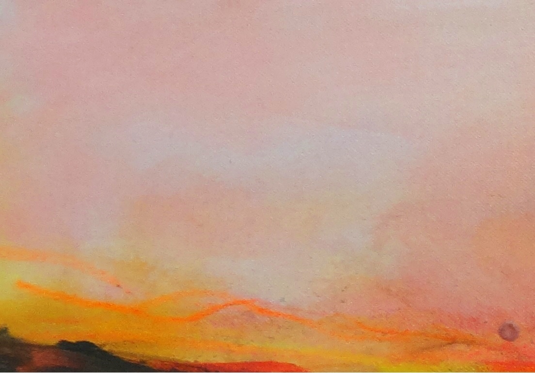 Wenn Sie ruhige Farbflächen erzeugen möchten, feuchten Sie den Pinsel nicht mit Wasser an. Je nasser der Pinsel ist, desto mehr „Pinselduktus“, also Pinselstriche, sind sichtbar. Auch eine sehr große Farbmenge auf dem Pinsel führt zu viel Pinselstrich und zu strukturierten Flächen. Besser mit dem trockenen Pinsel nur so viel Farbe aufnehmen, dass durch das kreuz und quer Führen des Pinsels eine ruhige Farbfläche entsteht. Hilfreich ist dabei auch, einen breiten Pinsel (je nach Bildgröße bis zu 10 cm breit) zu verwenden.