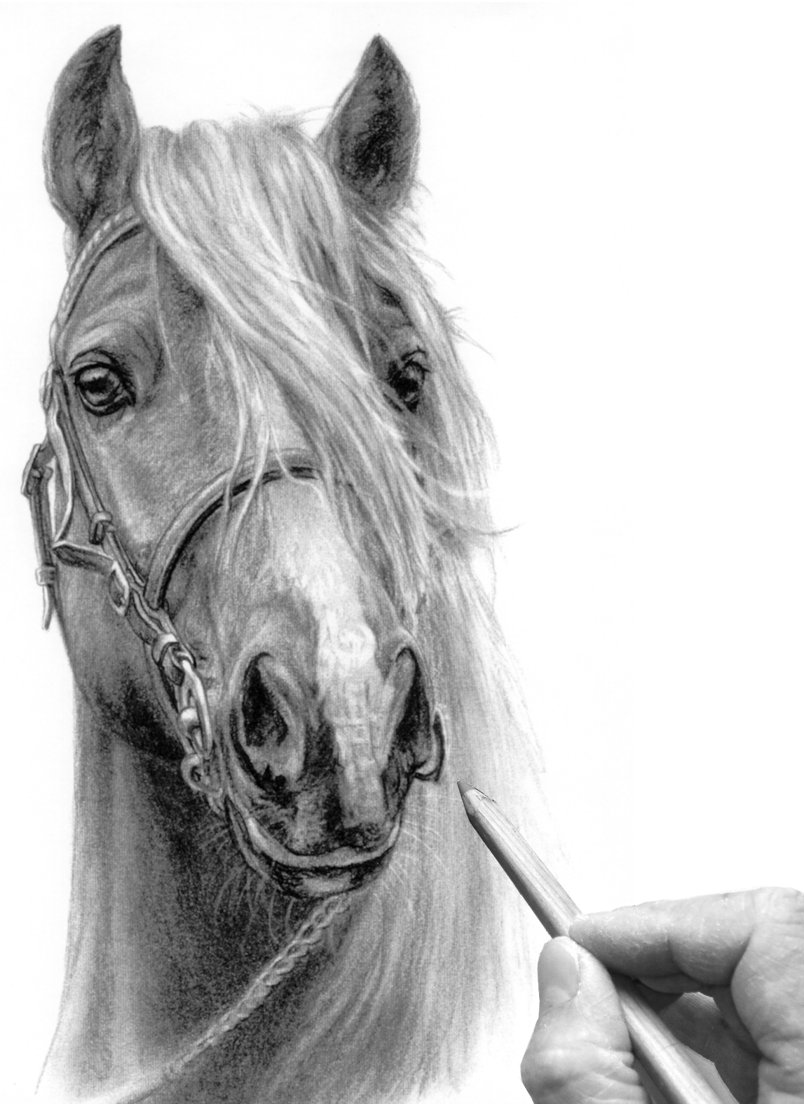 Wichtig in einer Zeichnung sind die Kontraste. Wenn das Bild eigentlich schon fertig erscheint, kann man zuletzt noch einige besonders dunkle Akzente setzen. Bei der Kohlezeichnung mit Naturkohle oder künstlicher Reißkohle kann man hierfür auch in Holz gefasste Kohle bzw. einen Schwarzkreidestift verwenden, im Falle der Bleistiftzeichnung einen besonders weichen Bleistift, z.B. 6B.