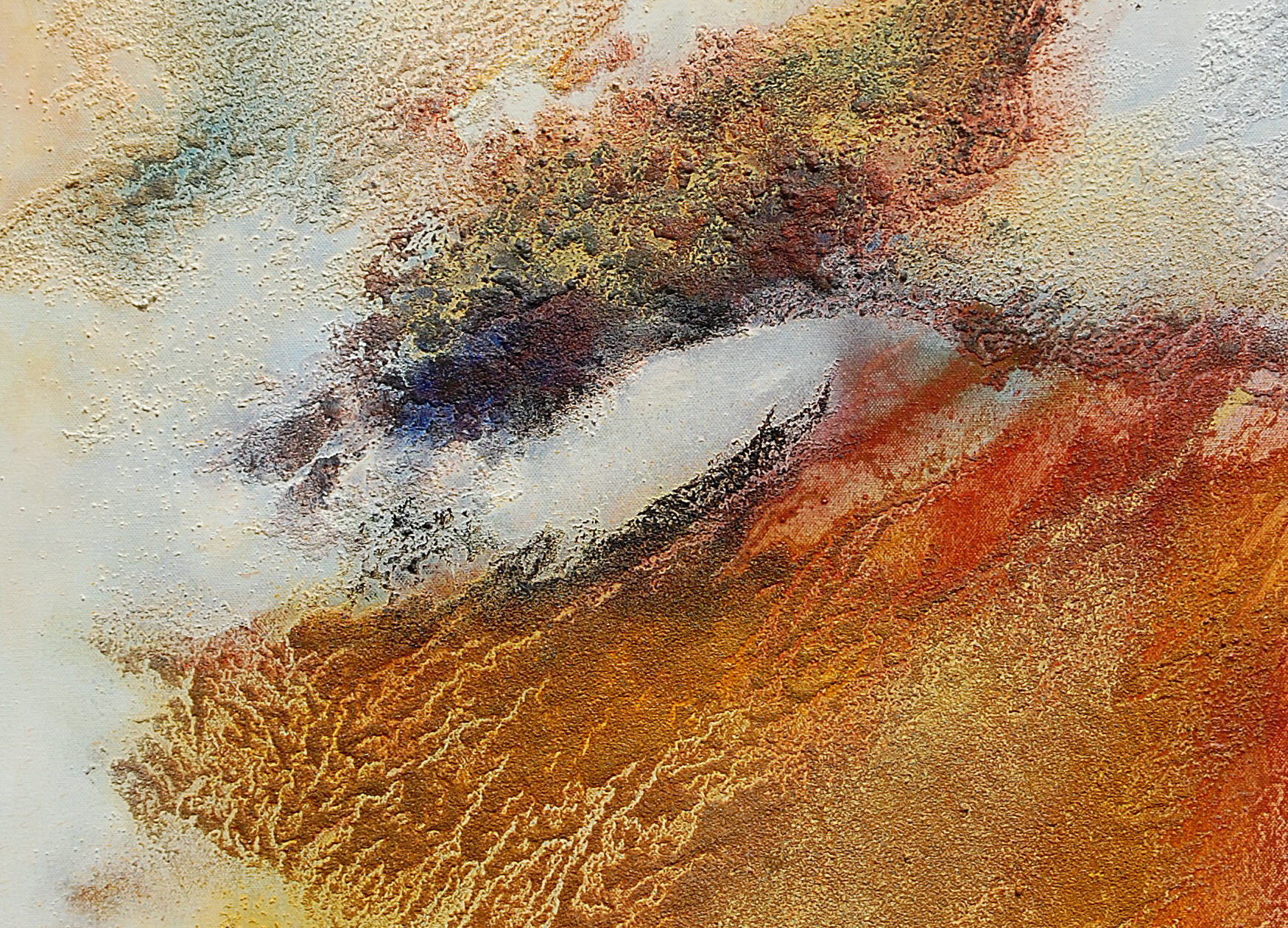 Unter „granulieren“ versteht man das Einfärben bzw. trockene Übermalen körniger Strukturen. Es geht darum mit einem möglichst trockenen Pinsel Farbe auf die Struktur „aufzubürsten“. Dabei werden meist nur die besonders hervorstehenden Strukturen farbig und die tieferen Ebenen bleiben in ihrer Ursprungsfarbe. Ein kleiner Tipp ist es immer nur in eine Richtung zu granulieren, dann sieht das Ergebnis gleichmäßiger aus.