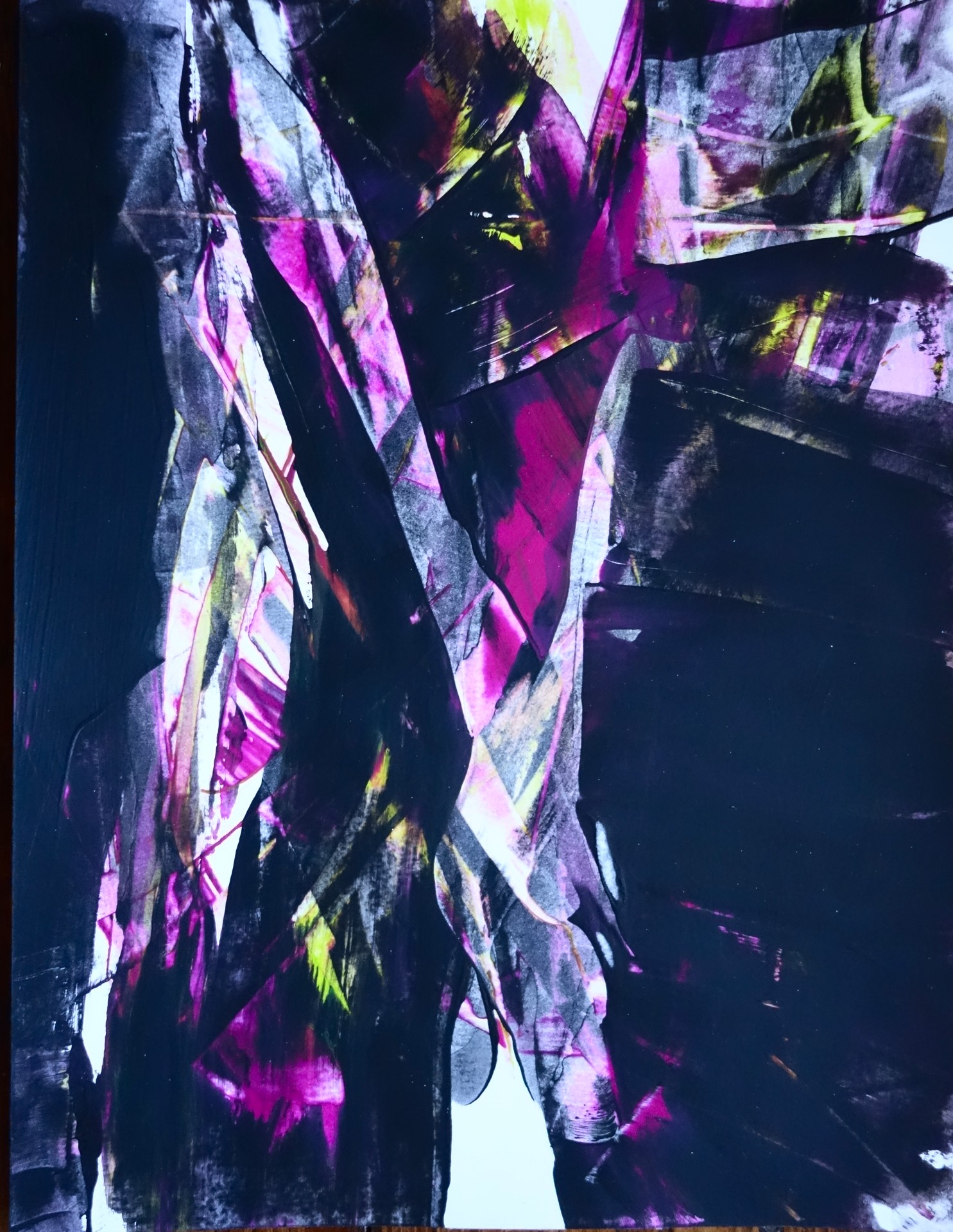 Bei der Sgraffito-Technik geht es darum zwei Farbschichten übereinander zu legen und dann Teile der oberen Farbschicht aus- bzw. wegzukratzen, solange die obere Farbe selbst noch nicht vollständig getrocknet ist. Zum Auskratzen kann man sowohl ein Mal- oder Palettmesser verwenden, als auch das Ende eines Pinselstiels oder einen Pappstreifen. Am schönsten ist der Effekt, wenn sich die obere und die untere Farbe durch starke Kontraste voneinander abheben.