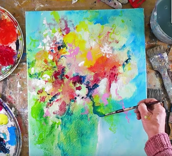 Farbenfrohe florale Acrylmalerei