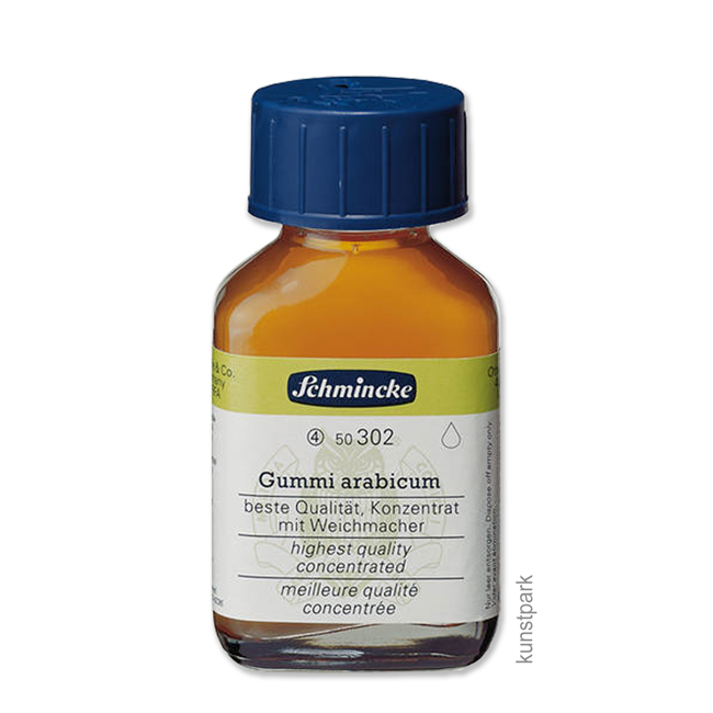 Der Kenner fragt sich sicher, was diese Kombination soll, da Gouchachefarben bereits das Bindemittel Gummi Arabicum enthalten. Das akazienharzhaltige Bindemittel hat die Eigenschaft die Konsistenz der Gouchefarbe zu verändern. Je mehr Gummi Arabicum man der Gouachefarbe hinzufügt, desto gelartiger wird die Farbe. Dabei wird sie meist ein wenig transparenter, sodass beim Malen Pinselspuren sichtbar werden.