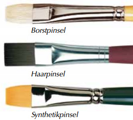 Für das flüssige Malen mit Acrylfarben eignet sich zum Beispiel auch der Nova-Ölmalpinsel, der dank extrafeiner Synthetikfasern über eine außerordentliche Geschmeidigkeit verfügt. Beim Arbeiten auf rauen Malgründen übertrifft die Lebensdauer dieser Pinsel die von Naturhaaren bei weitem.