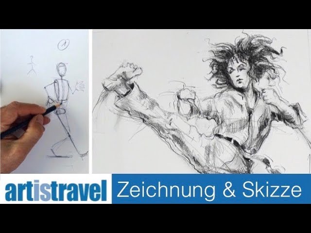 In diesem Tutorial zeigt SEBASTIAN GOTHE von artistravel wie man menschliche Körper und deren Bewegungen schnell erfasst und in einer Zeichnung wiedergeben kann. Er erklärt dabei zunächst drei verschiedene Herangehensweisen und wendet diese dann an einem Beispiel an.