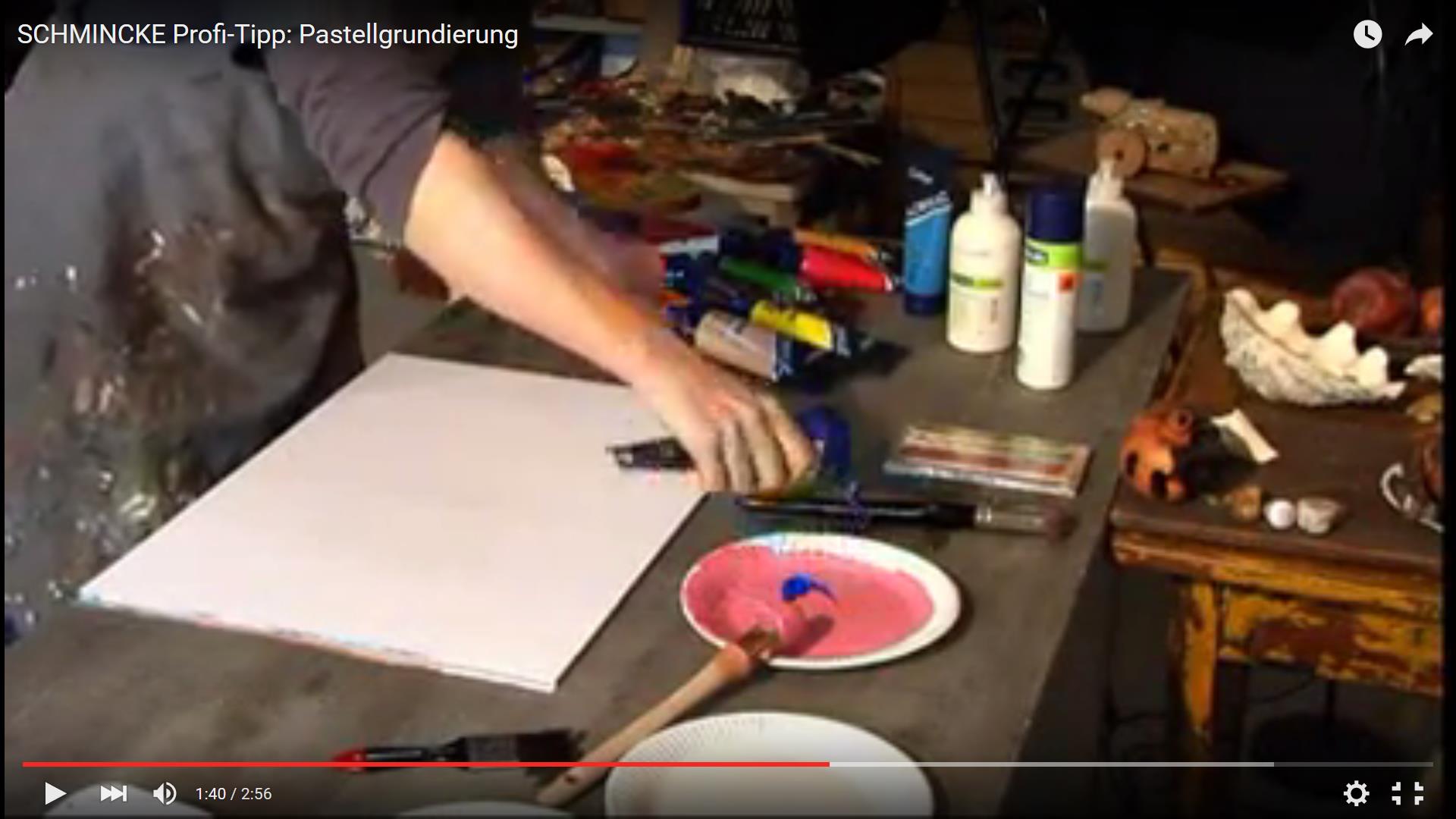 Wenn Sie nur ab und an mit Pastellfarben arbeiten, lohnt es sich meist nicht spezielles Papier zu kaufen. Deshalb kann man einfach schon vorhandenes Acrylpapier benutzen. Dieses wird dann mit einer Pastellgrundierung bearbeitet. Ein schöner Nebeneffekt hierbei ist, dass man die Pastellgrundierung gleichzeitig mit Acrylfarben einfärben kann, sodass man einen farbigen Malgrund erhält - Ganz nach eigenem Belieben.
