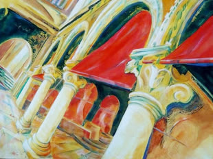 • Werk von Gabriele Templin-Kirz, in dem der Innenraum eines Gebäudes dargestellt wird.