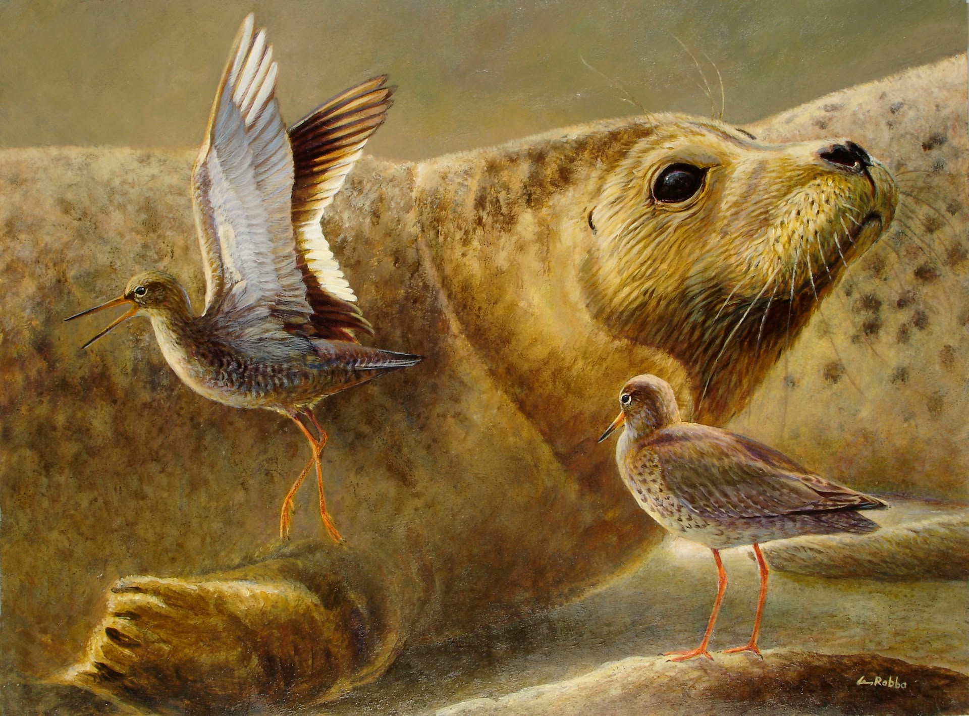 Ohne sich mit der Anatomie des Vogelgefieders beschäftigt zu haben, kann man keine überzeugende Gefieder-Darstellung erschaffen. Die Anordnung der Federn muss zeichnerisch richtig erfasst sein. Bei der Ausarbeitung mit Farbe kann man jedoch zunächst mit einem groben Borstenpinsel beginnen, wodurch der Gesamteindruck des gemalten Federkleides weicher erscheint. Erst dann werden einige Details mit einem feinen Rundpinsel betont.