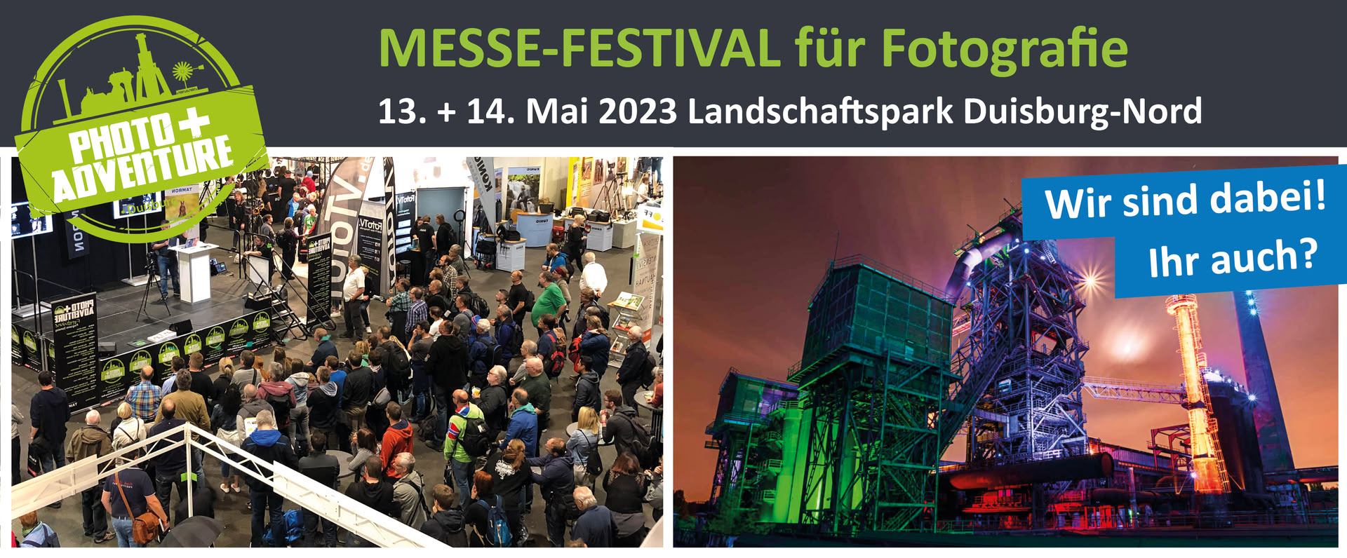 Fotografen aufgepasst! Dieses Jahr sind wir Aussteller bei der Photo+Adventure im schönen Landschaftspark Duisburg-Nord!