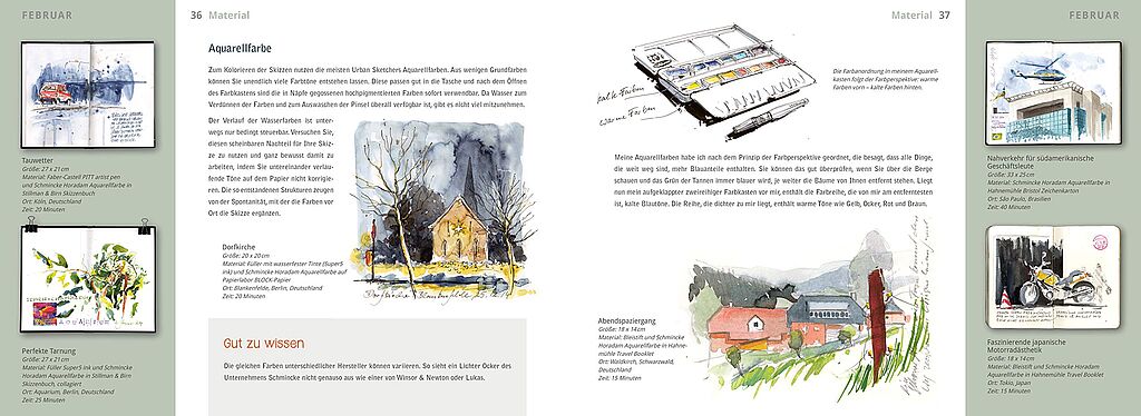 Dieses Buch präsentiert praktische Tipps und Anregungen für eigene zeichnerische Erkundungen der Lieblingsorte. Ihr lernt, wie Ihr ohne viel Gepäck und mit wenig Erfahrung überall und jederzeit Eure Umgebung aufs Papier zaubern könnt. Einblicke in die Seiten des Buches erhaltet Ihr unter “Mehr Bilder..”.