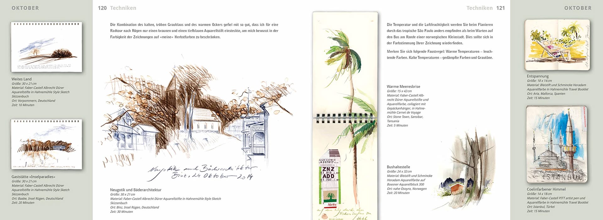 Dieses Buch präsentiert praktische Tipps und Anregungen für eigene zeichnerische Erkundungen der Lieblingsorte. Ihr lernt, wie Ihr ohne viel Gepäck und mit wenig Erfahrung überall und jederzeit Eure Umgebung aufs Papier zaubern könnt. Einblicke in die Seiten des Buches erhaltet Ihr unter “Mehr Bilder..”.
