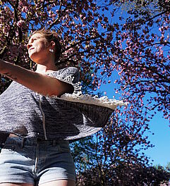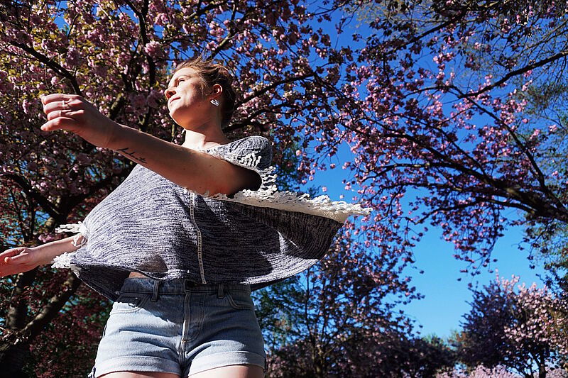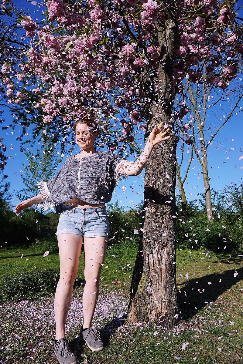 Um interessante Bilder zu bekommen, lohnt es sich, mit Perspektive und Licht zu spielen. Beim Fotografieren von Menschen können zum Beispiel Fotos aus der Froschperspektive sehr schön werden, da sie den Blütenhimmel mit abbilden. Die Nachbearbeitung bietet zusätzliche Möglichkeiten, die Blüten in Szene zu setzen: Ich habe einfach mal die Farben der Blüten oder des kompletten Himmels ersetzt oder entfernt.