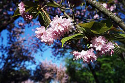 Was ich ebenfalls feststellen musste: Blüten gegen den Himmel zu fotografieren, ist gar nicht so leicht. Durch die starke Helligkeit des Himmels werden schnell entweder die Blüten sehr dunkel abgebildet (s. rechts) oder der Himmel gleißend weiß. Eine Möglichkeit, dies in den Griff zu bekommen, ist es, einen Blitz einzusetzen, am besten in Verbindung mit einem Blitzdiffusor Vorsatz (s. unten links). Eine andere, weniger authentische Möglichkeit, ist es, den Himmel in der Nachbearbeitung „auszutauschen“ (s. unten rechts).