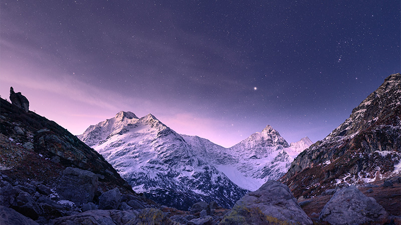 Auch bei totaler Dunkelheit ist es nachts nie vollkommen finster. Suche Dir also Deine Lichtquellen genau aus! Das Mondlicht ist beispielsweise eine viel härtere Lichtquelle als das Sonnenlicht und eignet sich wunderbar, wenn Du den Sternenhimmel fotografieren möchtest. Balance ist hier also essenziell. Suche Dir Lichtquellen, die zusammen gut funktionieren. Wenn Du zum Beispiel den Sternenhimmel fotografieren möchtest und neben Dir ein Leuchtkasten steht, dann wird er sicher Dein Bild überbelichten und Du kannst Dein eigentliches Motiv nicht mehr fotografieren. Meide helle Lichtquellen also. Die schönste nächtliche Stimmung fängst Du bei der sogenannten “blauen Stunde” ein. Zu diesem Zeitpunkt fällt das letzte Sonnenlicht flach auf die Erde und kreiert somit eine atemberaubende Atmosphäre. Nutze diese also!