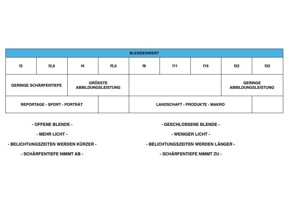 Wie stellen wir die Blende richtig ein und was bewirkt welche Einstellung?