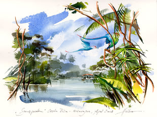 • Freiluftmalerei einer Szenerie in Costa Rica. Das Aquarellbild wurde von Jens Hübner gemalt.