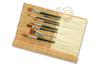 • Pinsel werden in der Stofftasche einer Pinselmatte aufbewahrt.
