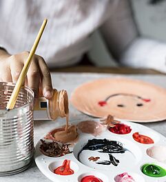 Der Mischvorgang der einzelnen Komponenten beim Pouring beginnt damit, dass Sie das Pouring-Medium zu der Acrylfarbe geben. Bei Bedarf kann die Farbkonsistenz in einem weiteren Schritt mit etwas Wasser korrigiert werden.