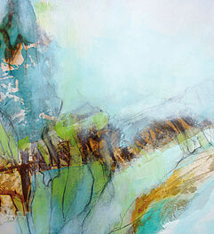 Interessante Texturen lassen sich nicht nur mit den üblichen im Handel erhältlichen Spachteln erzeugen. Genauso gut eignen sich hierfür Haushaltsschwämme, Bürsten, zerknülltes Papier oder diverse Stoffe. Je nach Leinwandgröße können auch ein Quast, Handfeger, Wischmop zweckentfremdet oder mit einer Spülbürste gemalt werden.