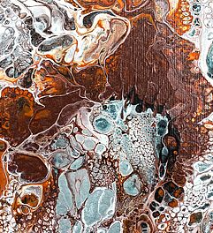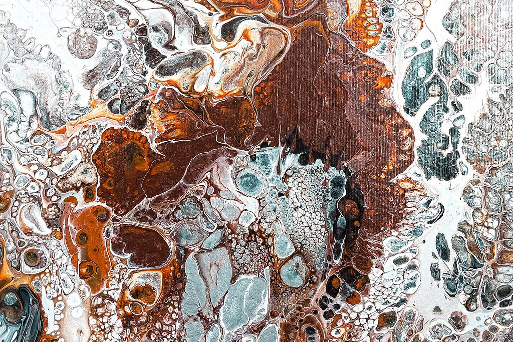 Die Flip Cup-Technik hat große Ähnlichkeiten mit der Dirty-Pour-Methode: Auch hier wird die Farbe zuerst in einem gemeinsamen Behälter gesammelt. Der nächste Schritt erfordert etwas Geschick: Stellen Sie den Becher so auf den Untergrund, dass seine obere offene Seite senkrecht auf dem Keilrahmen steht. Dafür müssen Sie den Behälter in einer schnellen Bewegung umdrehen und auf dem Untergrund abstellen, damit die darin enthaltene Farbe nicht vorher schon aus dem Behälter läuft.