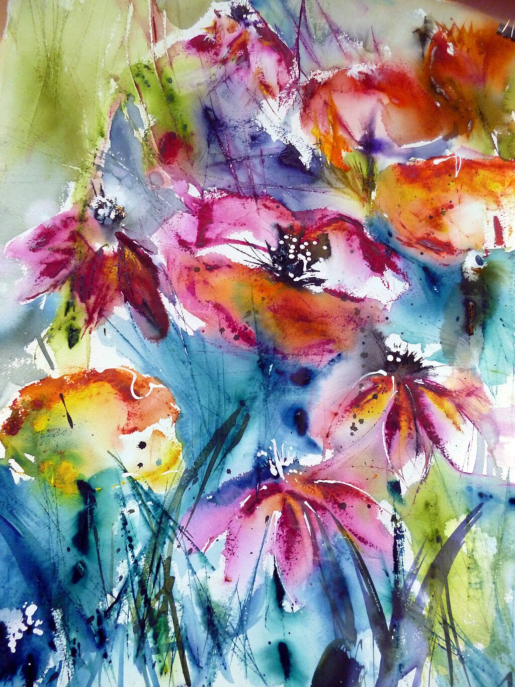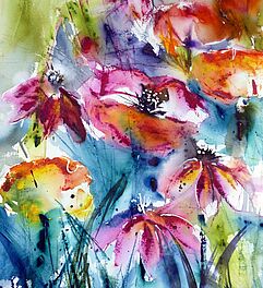 Um großflächige Aquarelle malen zu können, benutze ich Tubenfarben und Malpalette. Damit kann ich große Pinsel benutzen für die die Näpfchen zu klein wären.