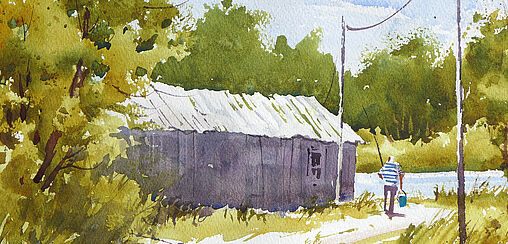 Auf weißem Papier wirkt weiße Aquarellfarbe kaum. Dort erzeugt sie meist sogar einen gräulich erscheinenden Schimmer. Wendet man sie jedoch auf farbigem Papier an, so entfaltet sie erst ihr wahre Wirkung. Sie eignet sich super zum Setzen von Akzenten und zur farblichen Abstufung des Hintergrundes.