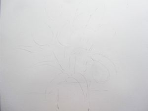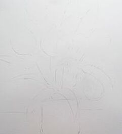 Mit leichten Bleistiftstrichen zeichnet Ihr zuerst auf dem Aquarellpapier das Motiv vor. Danach tragt Ihr lockere Halbkreise auf: Das geht am besten direkt aus der Tube. Die Halbkreise sind die Grundlage für die Blüten, die daraus später entstehen. Sabine empfiehlt, genügend weiße Flächen auf dem Bild stehen zu lassen und dabei sparsam mit den Farben umzugehen.