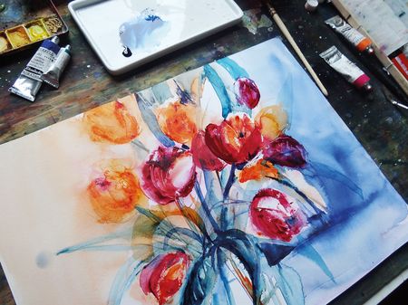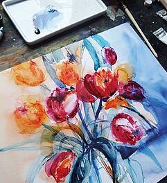 Unsere Dozentin Sabine Hilscher hat Ihre eigene Technik gefunden: Malen und Spachteln mit Aquarellfarben aus der Tube! Sabine erklärt ihre besondere Technik in dieser Anleitung.