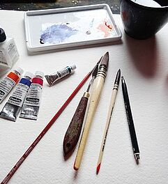 • Unterschiedliche Aquarell-Pinsel, z.B. von daVinci