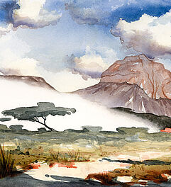 Jeder, der schon einmal eine Landschaft gemalt hat, kennt es: Den Versuch den Vordergrund mit Grashalmen und Blümchenvariationen aufzuwerten. Dies sieht aber meist nicht sonderlich schön aus. Hier nimmt man am besten einen dicken Pinsel und verleiht der unteren Bildpartie mit lockeren Pinselstrichen und ein wenig Farbe ein leichtes Outfit.