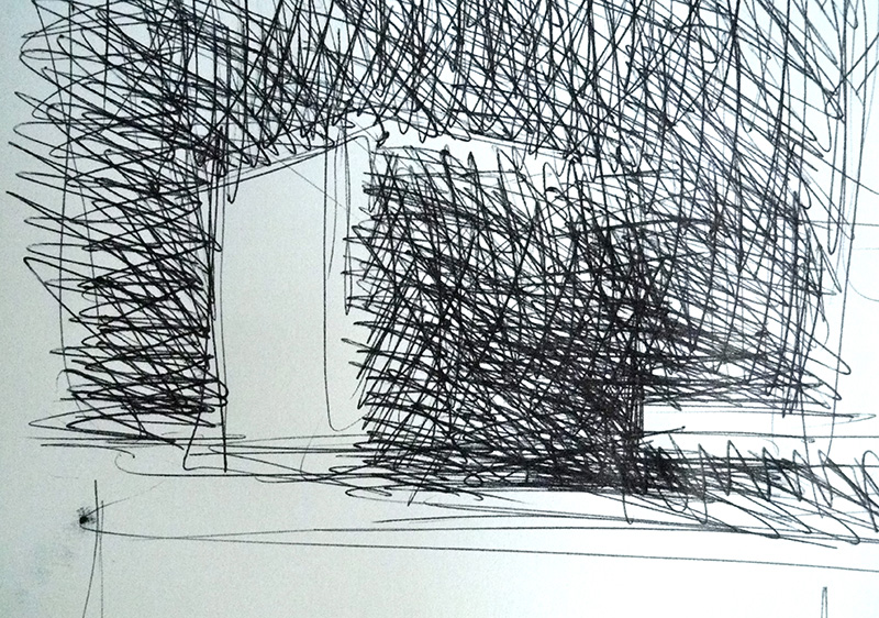 • Foto von einem gezeichneten Portrait und einer Hand, die einen Bleistift darüber hält