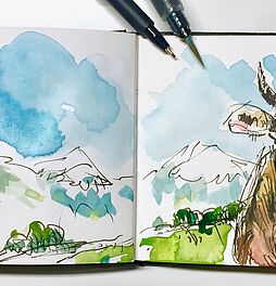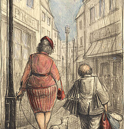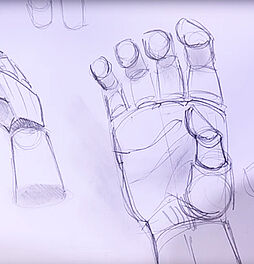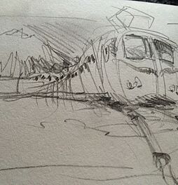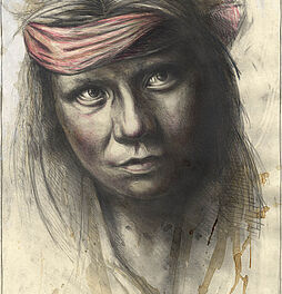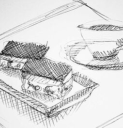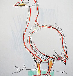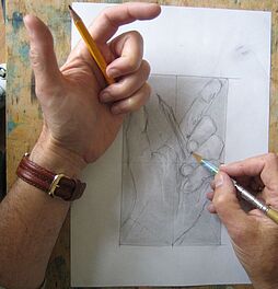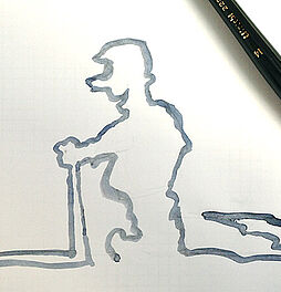 Eine ganz besondere Zeichentechnik ist es nur mit waagerechten oder nur mit senkrechten Linien, die sich nirgends überschneiden, zu arbeiten. Die Kontraste werden dadurch erzeugt, dass man die Linie an den dunklen Stellen dicker zeichnet und an den hellsten Stellen ganz dünn. Man muss sich jedoch sehr konzentrieren, dass man nicht aus Versehen eine schon vorhandene Linie übermalt, sodass immer einen gewisser Abstand zwischen den Linien zum Vorschein kommt.