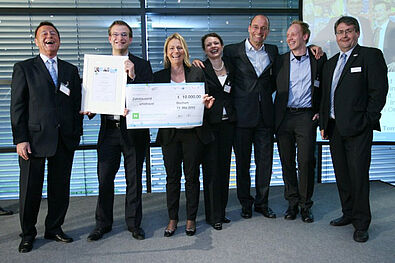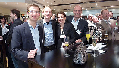 Über 300 Teilnehmer hatten sich für den Gründerwettbewerb 'Senkrechtstarter' angemeldet. Das Konzept des Teams von artistravel schaffte es gegen starke Konkurrenz bis auf den zweiten Platz und feierte zusammen mit anderen Gästen und Teilnehmern im Stadion des VfL Bochum.