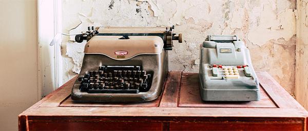 Alte Schreibmaschine und Telefon, von Dirk Matthiesen.