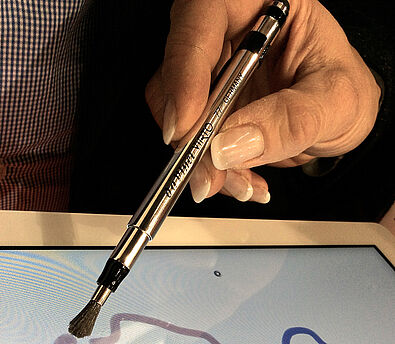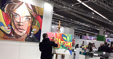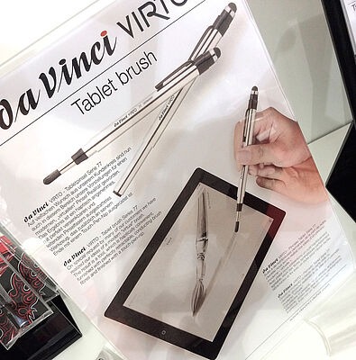 Für uns eine wunderbare Gelegenheit unsere Partner von Hahnemühle, SCHMINCKE und daVinci zu sehen. Diesmal gab es allerhand spannende neue Produkte zu bewundern: Einen PINSEL für‘s iPAD von da Vinci, der wirklich großartig funktioniert und ab Mai in den Handel kommt, ein geruchloses Malmittel von SCHMINCKE, das dafür sorgt, das Ölfarbe sich mit Wasser vermalen lässt und die Kopfschmerzen beim Malen der Vergangenheit angehören und einen tollen süd-amerikanischen Street-Artisten, den wir bei Hahnemühle am Stand getroffen haben. Außerdem dabei: artistravel Dozent und Top Aquarellist Andreas Mattern und unser Freund Martin Thomas.
