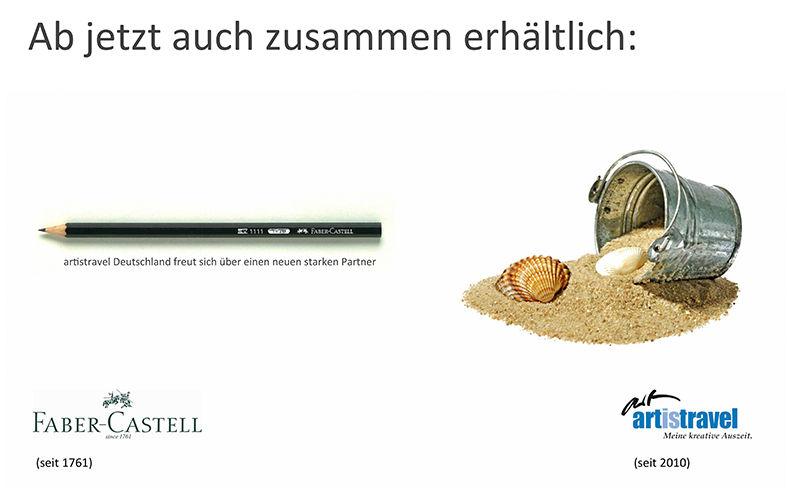 253 Jahre Erfahrung bringt unser neuer Partner Faber-Castell in die Kooperation mit artistravel ein. Als ältestes und weltweit größtes Unternehmen für holzgefasste Stifte genießt Faber-Castell mit seinem Art & Graphic Sortiment hohes Ansehen bei Künstlern, Designern, Grafikern und Hobbymalern. Bedeutende Kreative wie Vincent van Gogh und Karl Lagerfeld haben mit den Stiften der Weltmarke aus Nürnberg gearbeitet.