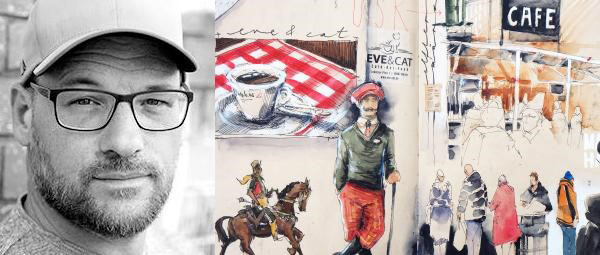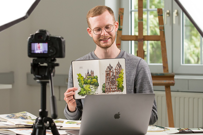 Aber auch die Farbe darf nicht fehlen! Deshalb ist unser Online-Kursprogramm ein Traum für Urban Sketcher: Wer es gerne etwas lockerer, witziger und bunter mag, dem zeigt GRIS die Grundlagen. Einen Kurs zu Figuren und Gesichtern von ihm gibt es genauso wie einen Urban Sketching-Grundlagenkurs.